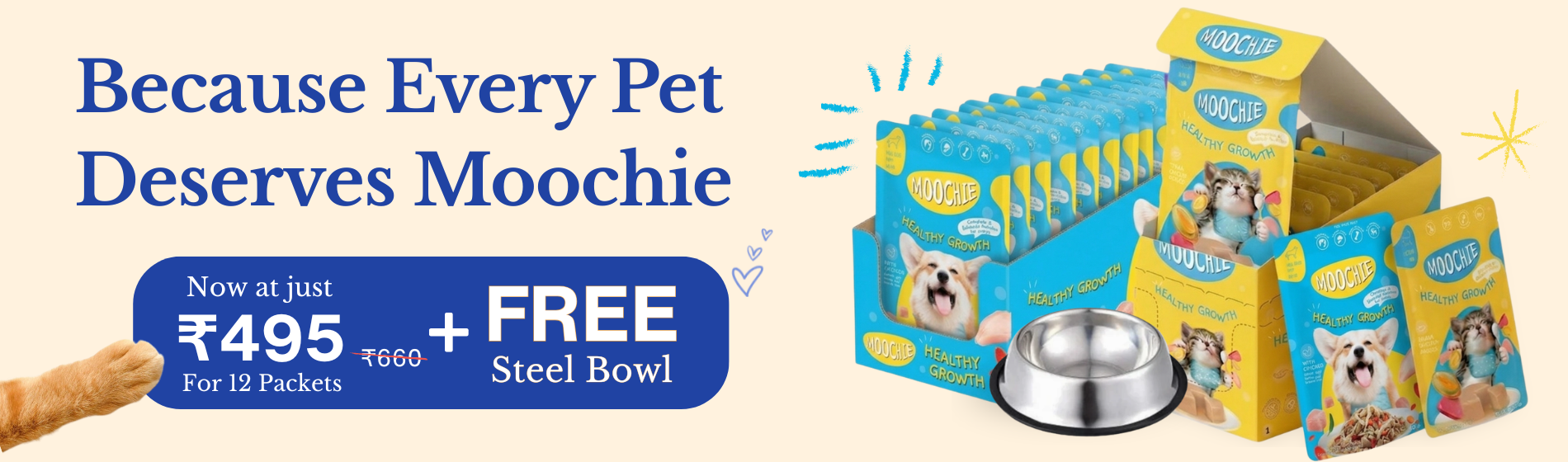 thank you for bringing MOOCHIE WET FOOD. My champ loves all the flavours plus the creamy treats that's launched recently. Looking forward to many more yummy meals for my baby